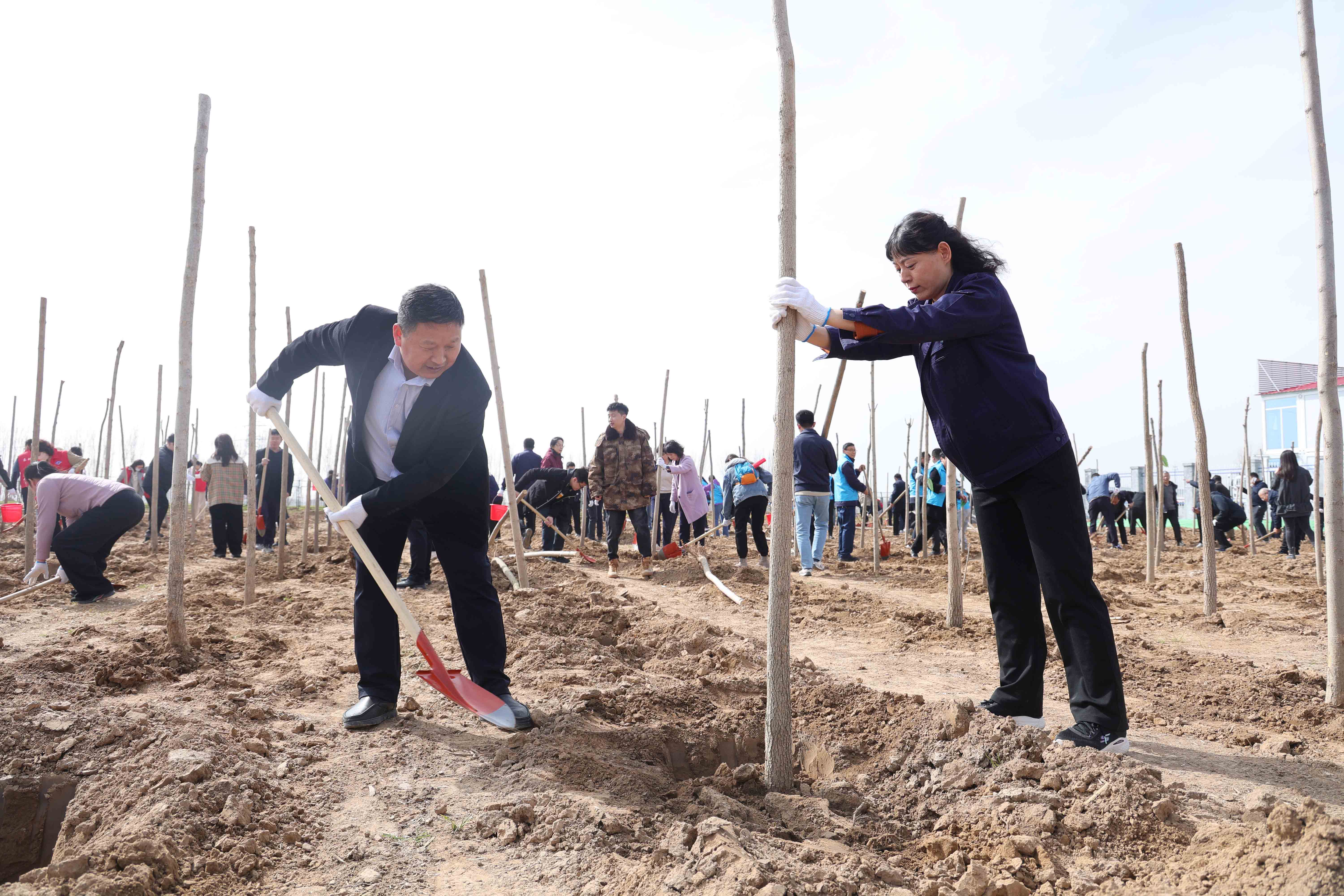 開幕儀式結束后,200余名干部職工挖土、扶苗、培土,動作嫻熟有序,與周邊為水庫清基的工程機械遙相呼應。本次活動共栽植白蠟樹苗500余株。此次活動通過政企聯動模式,將工程建設與生態建設有機結合,既以實際行動弘揚了“植綠、護綠、愛綠”生態文明新風尚,也為太平水庫增添了綠色底蘊。